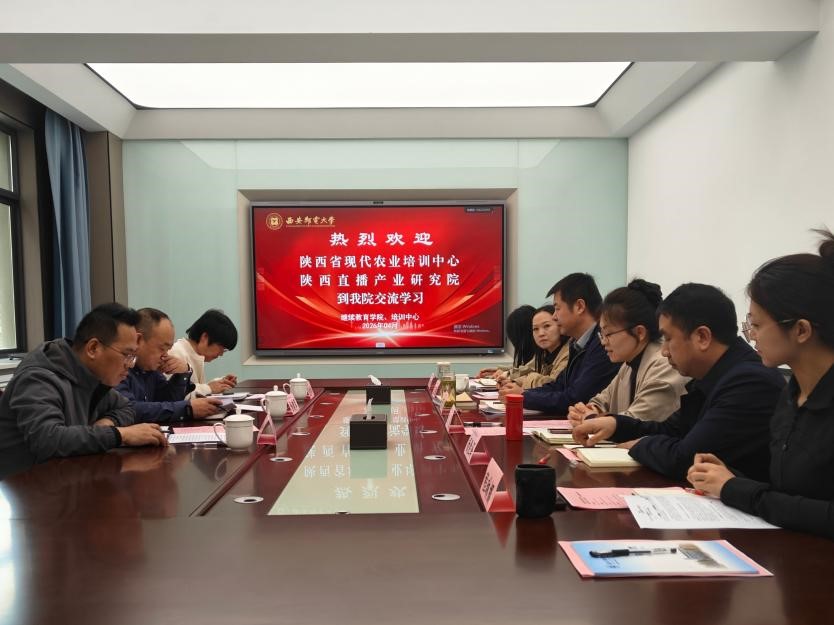 4月3日下午,陕西省现代农业培训中心副主任杨建军、陕西直播产业研究院教师卫亚婧一行来我院交流座谈。继续教育学院院长李天龙、教师代表参加会议,副院长刘晶主持座谈会。